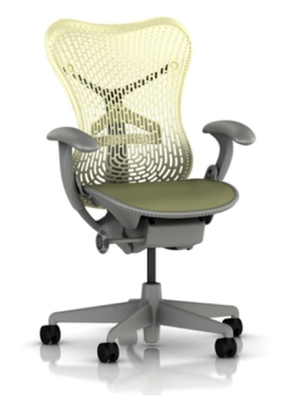 Herman Miller Mirra Chair with Citron TriFlex polymer Back and Seat with Graphite FrameHerman Miller Mirra Chair with Citron TriFlex polymer Back and Seat with Shadow Grey Frame