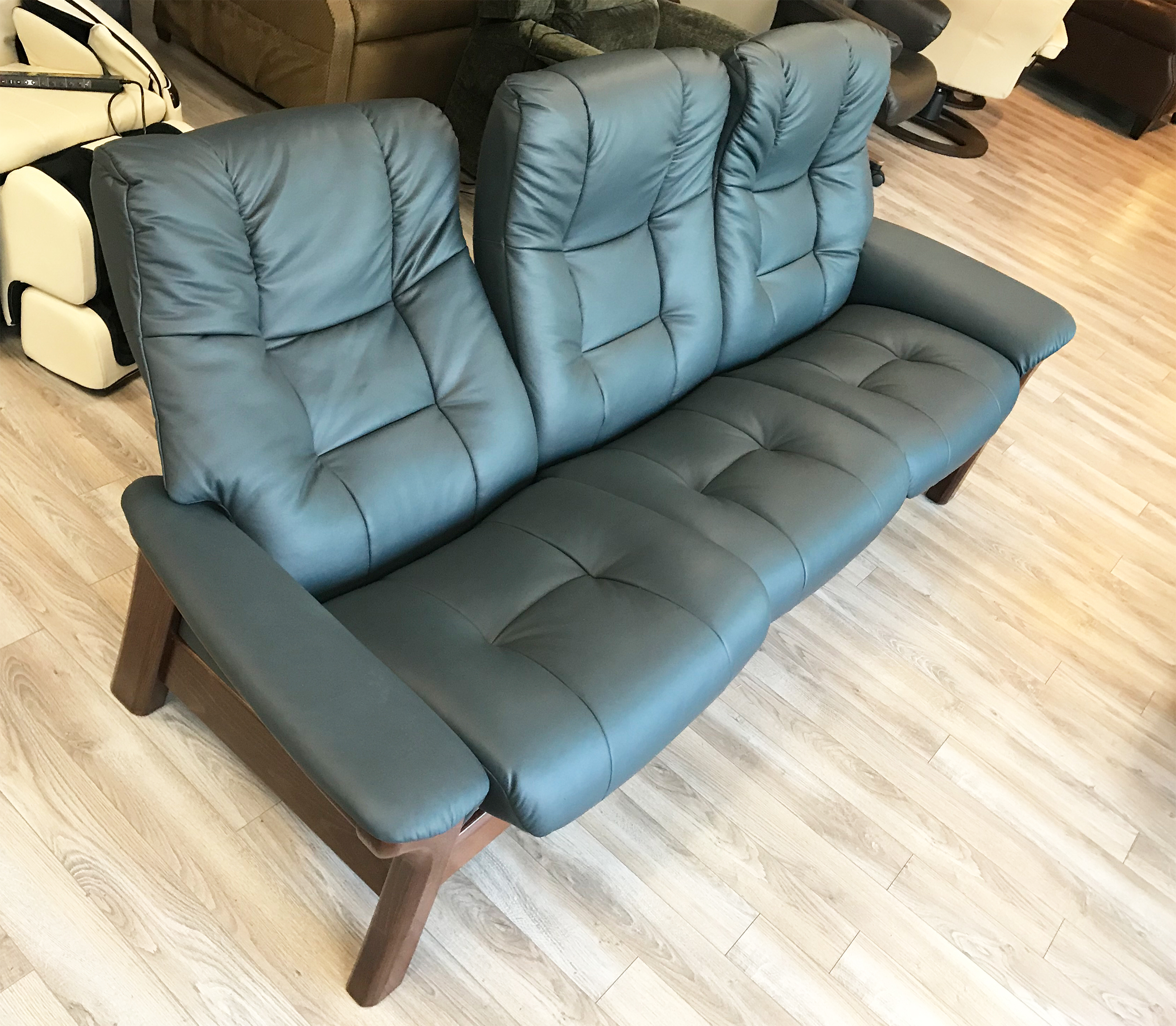 Stressless Buckingham 3 Seat High Back Sofa Paloma Shadow Blue Leather Recliner Sofa