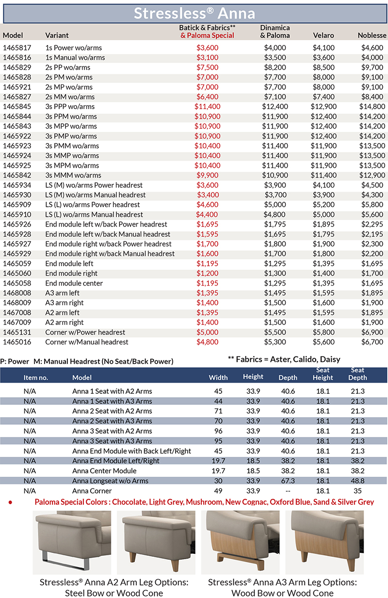 Stressless Anna Upholstered Sofa, Loveseat and Sectional measurements by Ekornes