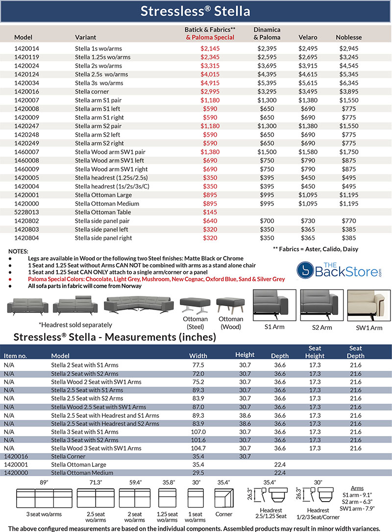 Stressless® Stella Sofa, LoveSeat and Chair